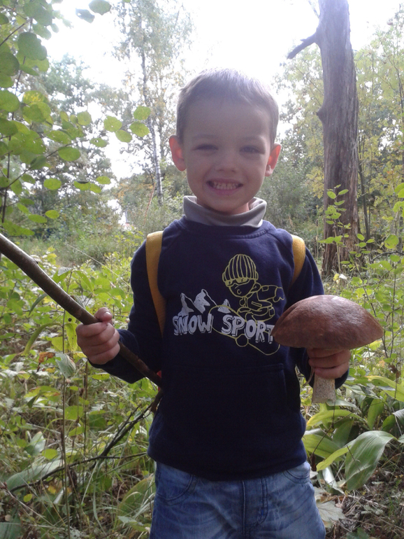 Из интересного еще - ходили в субботу за грибами. Ну как ходили, решили в роще прогуляться, а набрали целыйпакет подберезовиков!!! Муж был в востогре больше Костика от этих грибов)))) так что наморозили, будем супчики варить)))