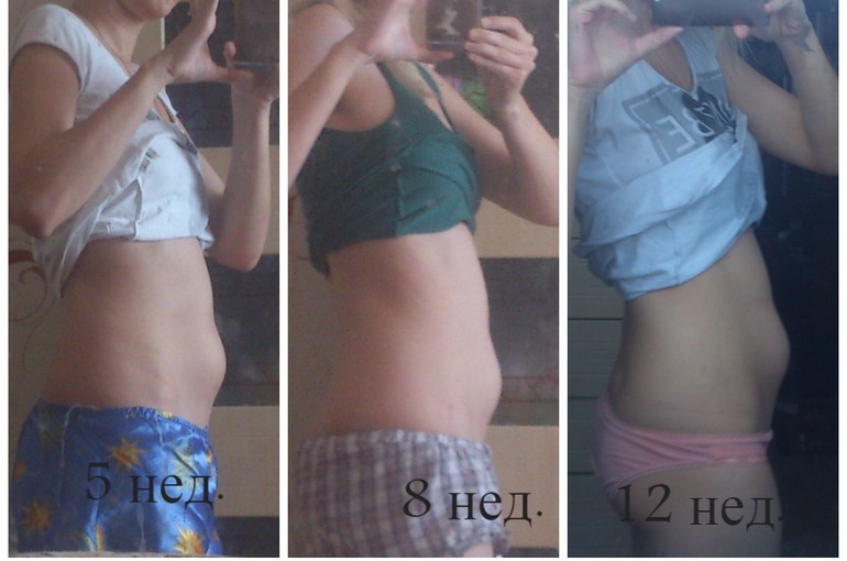 у меня также было)) какой животик в 5 неделек вылез, такой аж до14 и оставался)