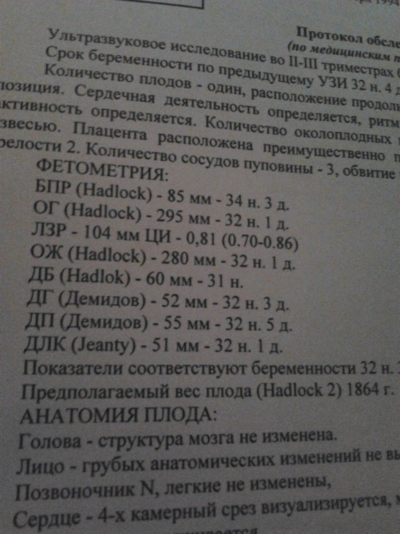 Так, стоп, длина бедра 60 мм. Отстает на 1,5 недели. Это еще ни о чем не говорит. У вас мальчик или девочка? после 30 недель вступают в силу генетические особенности плода. Допплер делали?