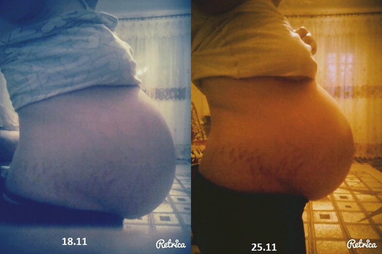 Юль, извините за нескромный вопрос: это у вас растяжки под животиком? А так большой симпатичный пузяко))))) и он на фото справа кажется ниже стал, опустился