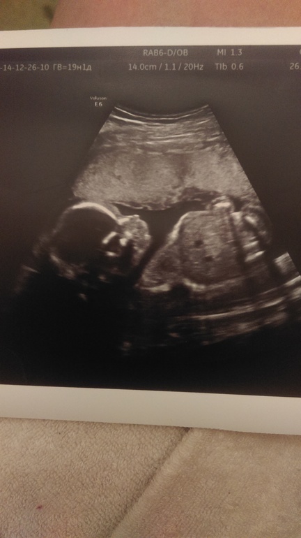 Результаты: УЗИ, КТГ, доплера, скринингаВсе у нас с малышом хорошо.развивается в срок 19нед,14см в длину и вес 321гр. Подтвердили мальчика.теперь самое время начинать думать над именем)) фото малышуна под катом