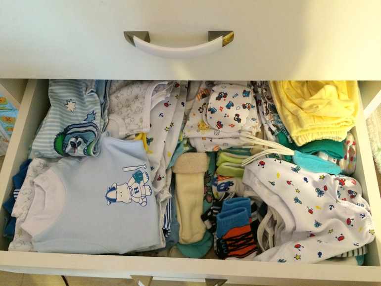 Да я-то знаю, также с дочкой старшей было)) это нам надарили — наприсылали родственники))) сама я только самое необходимое покупала)) у меня еще два нижние ящика комода завалены вещами на 3-6 и 6-9, так что считай почти на год вперед все есть)))