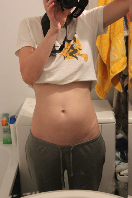 А вот мое пузо. Утром еще ничего, а вот вечером оно огромное. Надо сфоткать для сравнения вечером.