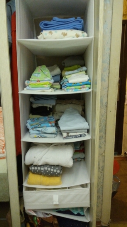 вот такие стопочки у нашего малыша в шкафу, ждут его)) и пакеты уже ждут))и кроватка!