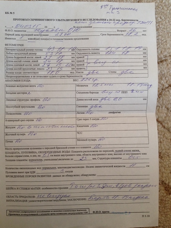 Результаты: УЗИ, КТГ, доплера, скрининга