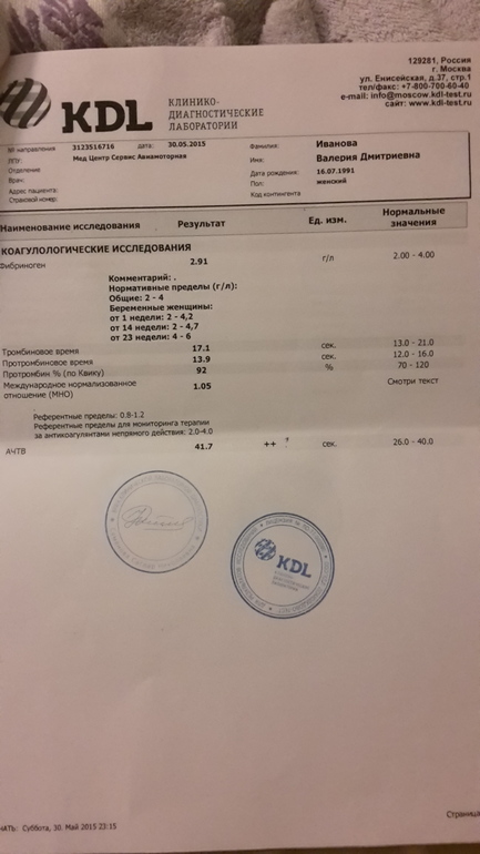 ой я не то имела ввиду я думала вам до этого она тоже назначала. просто у тех у кого тромбофилия и риск тромбозов отслеживают это постоянно помимо этого гемостазиограмму расширенную. и гепарин или аспирин если дают то по этим показателям смотрят добавить или отменить. у вас сейчас уже склонность к кровотечениям повысилась т.е она не назначить а отменить его должна