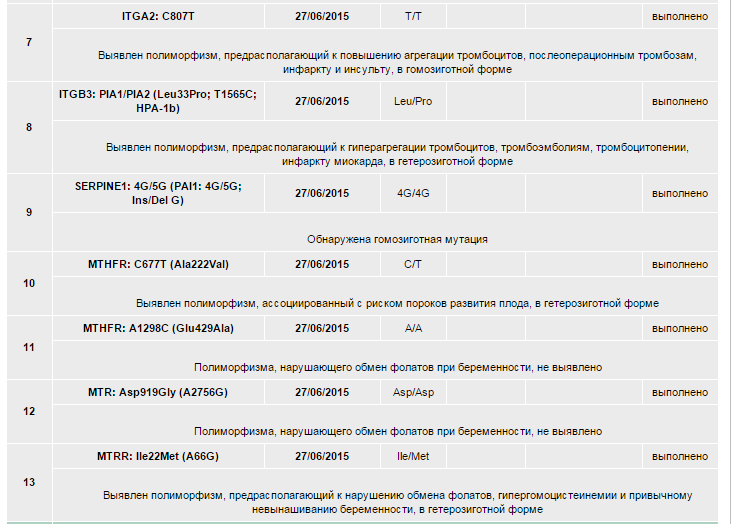 у вас несколько мутированных гетерозиготных генов, но обычно они не страшны и себя не проявляет) мы почти все, человеки, являемся носителями каких-нить мутированных генов. а вот с гомозиготами поосторожней надо быть. Вам всего лишь нужен контроль гемостаза. вот и все. Вся эта генетика всего лишь риски. У меня тоже 5 мутированных генов из 12. гетеро пока не проявляются судя по гемостазу (коалуграмме), а вот с гомозиготой мы перестраховались. Но у меня фолька не усваивается по генетике, поэтому пью убойную дозу фолиевой и все. все у вас хорошо будет.даже не переживайте. это есть у многих, главное контроль, а там, если что все можно скорректировать препаратами)