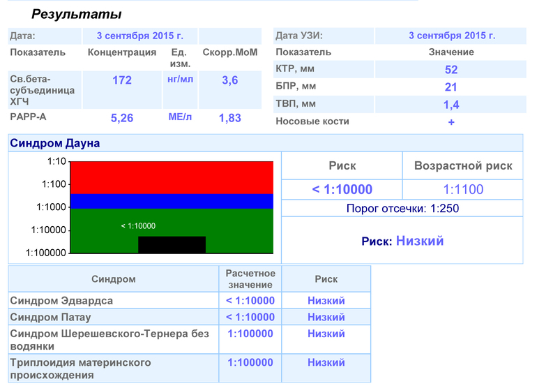 Результаты: УЗИ, КТГ, доплера, скринингаПолучила результаты; я так понимаю, что уровень b-хгч повышен, хотя везде написано, что риски низкие.