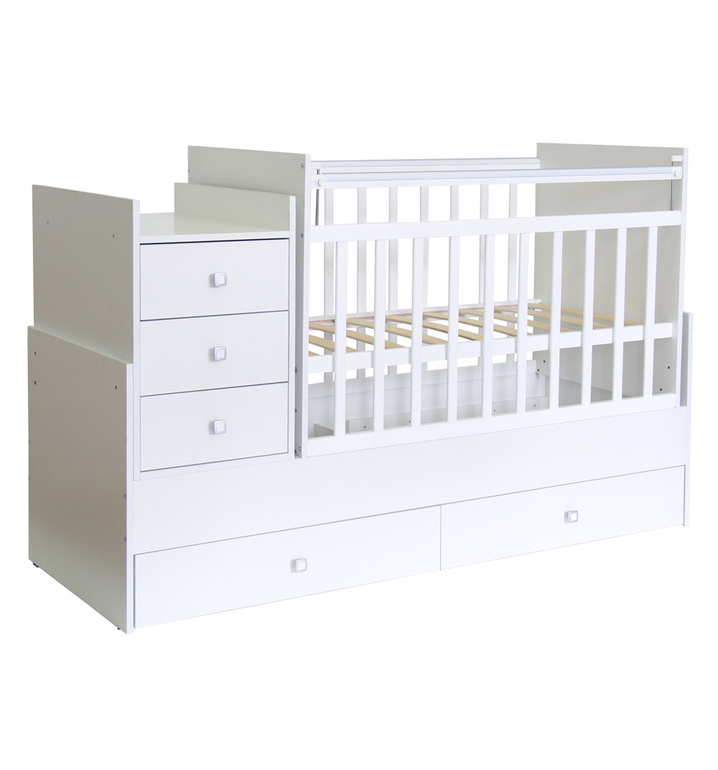 у нас тоже маломеста,т.к.живём в своём доме.в первую беременности увидела я эту кровать и конечно же купила.ни сколько не пожалела.в принципе пеленальный столик нам вообще не пригодился.я всё делала на диване,мне так удобнее,хотя кому как.у нас она была ещё маятниковая,вообще было всё хорошо.3-х ящиков нам хватило.в низ я складывала в один бельё и пелёнки,в другой костюм или комбез для прогулки.потом покупали мешочек на кроватку для всяких мелочей.но у меня там хранились только памперсы))на сам пеленальный столик сверху я поставила всякие баночки:масла,крема,молочко и прочее.потом,когда доча подрасла,мы её разобрали поменяли матрас и по сей день дочка спит на ней.ни чего не сломалось и очень удобно.рекомендую.