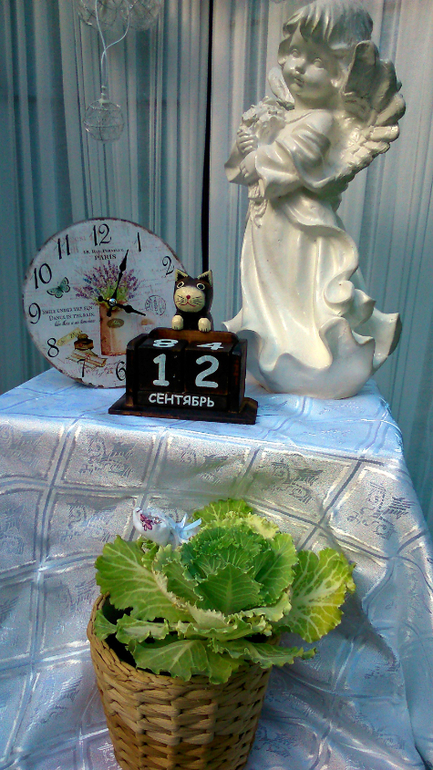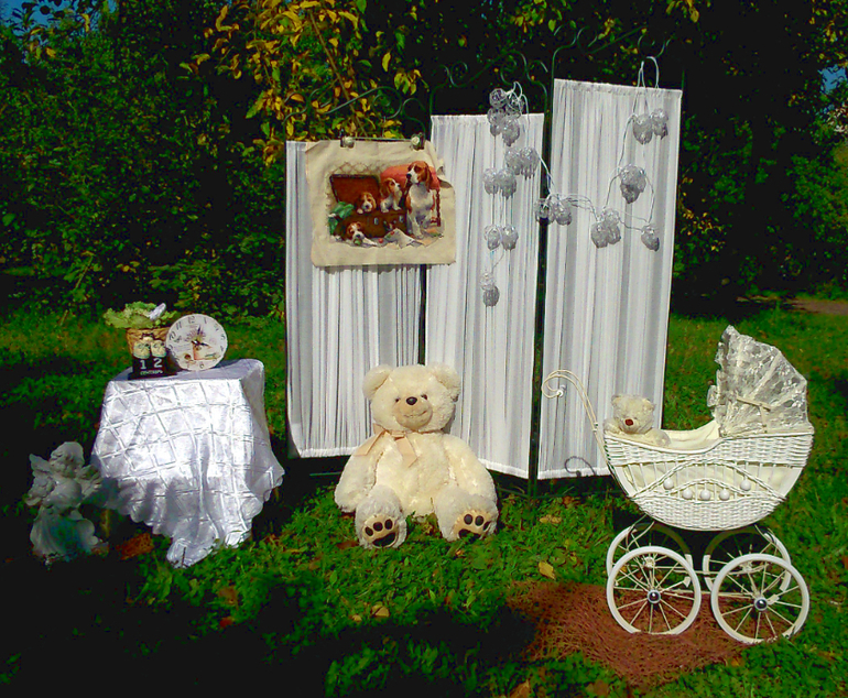 Подготовка к родамНежные декорации для выписки из роддома. На часах выставляется время рождения ребеночка, на календаре дата рождения. Букетик декоративной капусты, в котором "нашли" малыша. Ретро колясочка и ширма послужат прекрасным дополнением и созданием фона. Удивите своих родных и любимых.