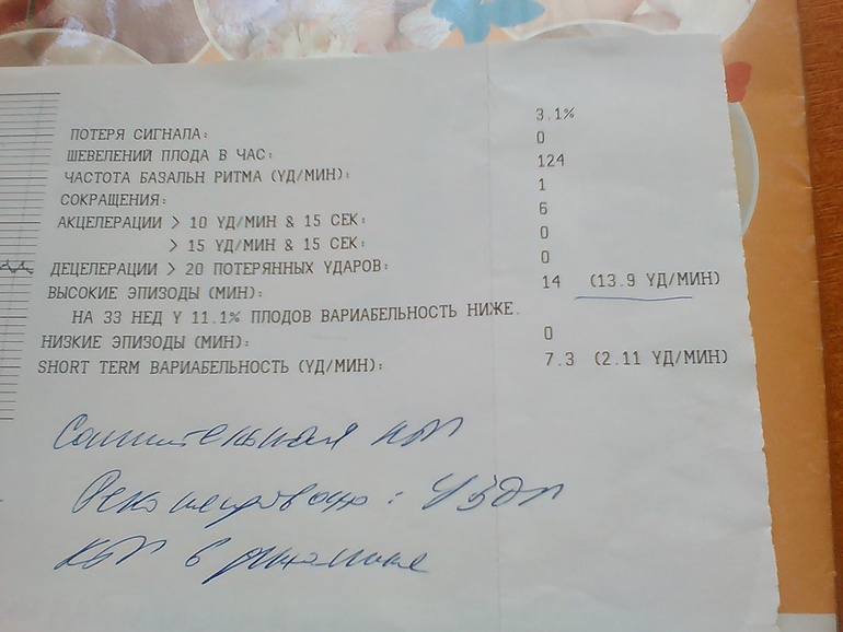 напмсала, что ктг сомнительная, ей не понравился показатель, подчеркнула. Сказала, что это нижняя граница нормы. А нормы чего, показатель чего, ничего не рассказала. К врачу завтра. Но мысли мои, каша.