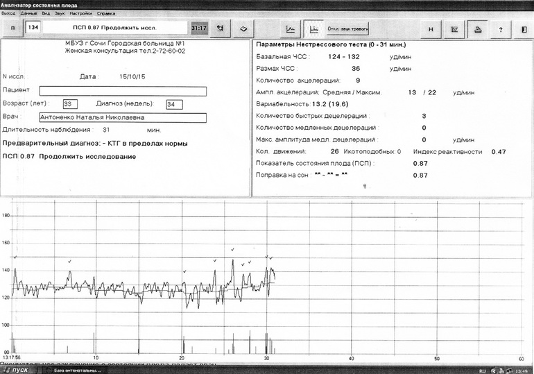 Средняя частота между 130 и 140. Но раз 5 СБ резко на секундочку падало до 120 - 124. Г это наторожило и мы пошли смотреть узи.