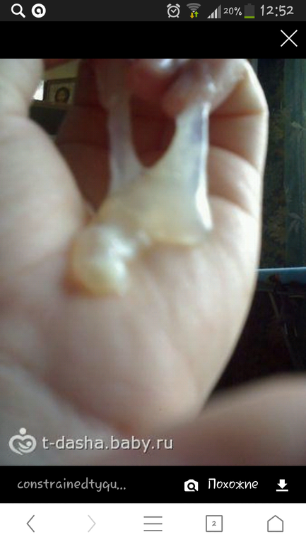 вообщем очень похоже на это ..только тут выглядит жидко а у меня гуще...по количеству столько же....по цвету тоже так же...после того как вышла эта слизь.... прошло часа два как вышла эта штука..после её 2 раза еще ходила пописать..и слизь на бумажке остается ..но уже полностью прозрачная и меньше на много...