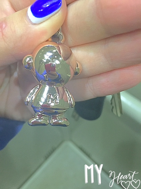 В выходные сидели кушали в ресторанном дворике в ТЦ, и к нам подходит глухонемой и кладет какую-то вещицу с бумажкой (такие люди очень часто в пробках подходят, метро и тд), ну мы с мужем не обратили внимание, даже сначала не посмотрели что именно он положил к нам на столик.. Сидим кушаем дальше.. И тут муж пригляделся, и говорит: "Смотри какой брелок - розовенькая с беленьким девочка, а на животике и спинке буковка "М"