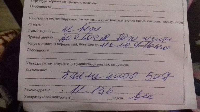 Понять не могу что написано. Может кому удастся разобрать, особенно важно где написано про тонус. Это узи 5 недель 5 дней, 14 числа будет ужЕ 8 недель.