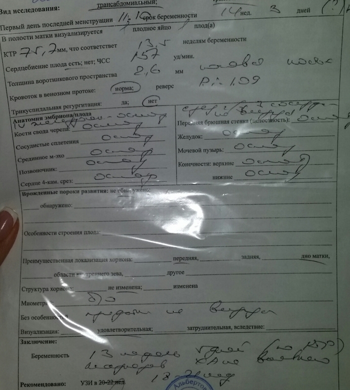 Предъистория: по акушерскому сроку у меня вчера был срок 14.3 ( что по идеи позднова то) но меня отправили на узи на таком сроке т.к.по посчитали по 1 узи в 6недель и щас по узи тогда должно быть примерно 12недель.....