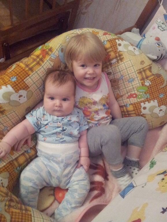 Подводя итог первых месяцев, я сделала для себя вывод, что проблемы с рождением второго ребёнка - это проблемы со старшим. Ведь малышковые заботы уже хорошо изучены и не доставляют особых хлопот, особенно, если разница у детей не большая. Главная проблема - это старший ребёнок. Его(её) просто жалко. И сразу вырастает огромное чувство вины перед ним. Ведь он не виноват ни в чём, но страдает в первую очередь. Я свою дочку заранее готовила к появлению братика, и сказки с братьями-сёстрами читали, и пупсов пеленали и т.д. Предупреждала, что меня не будет несколько дней, что я буду в больнице, мне Рому из животика доставать будут. Что её тоже у меня из животика доставали, и мы с ней лежали в больнице. Показывала ей видео, где она маленькая. Расставание со мной она легко перенесла. Братика она очень любит, гладит его и целует. Ни разу не пыталась его ударить или типа того, не обзывается. Но волком воет, когда ей срочно надо попрыгать/потанцевать, а я занята с Ромой, правда, сейчас уже реже, привыкает, видимо.
