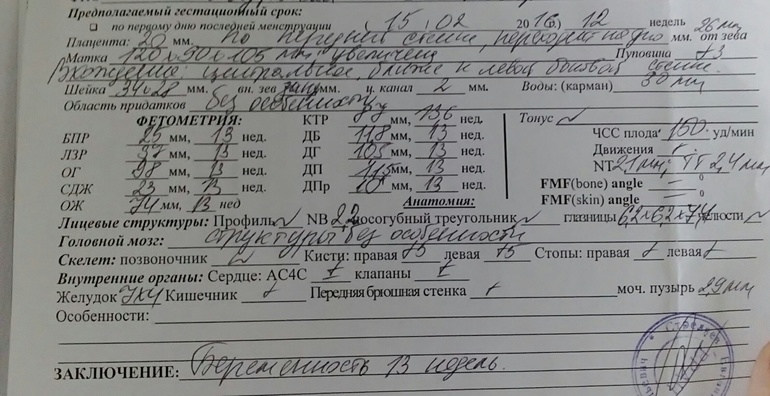 Были на скрининге в понедельник, показывали нашего малыша - прослезилась пару раз)) Смотрю на вашу расшифровку и удивляюсь сколько всяких параметров вам там указали... у меня в предварительном заключении данных поменьше (глазницы, например, не измеряли), но еще бумагу с цифрами отправили в лабораторию, результаты в течение 2-х недель будут (моя клиника так работает, я думаю, что это на всякие генетические отклонения проверяют). У вас ничего такого не отправляли?