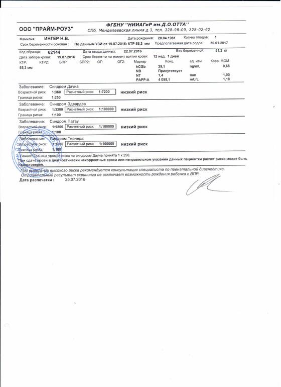 вчера получила результат скрининга по крови, если всё правильно прочитала и разобралась, то т-т-т всё нормально