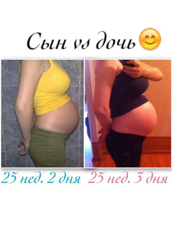 Форма одинаковая,с дочкой чуть больше.Но это и понятно с каждой новой беременностью мышцы более растянуты,живот больше.У меня сейчас в 27 такой как в первую в 40.Меня все с этой формой достали...Узи уже показало,что девочка,а "спецы" утверждали,что мальчик.