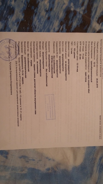 Жду результаты крови еще... интрига такая 😥😰😰😲 если через три дня позвонят после сдачи (я сдавала 25.08) то анализы плохие. Если нет, то хорошие.. результаты можно будет узнать у г. А к генетику идти сказали если результаты плохие.. узи хорошее, кровь осталась.