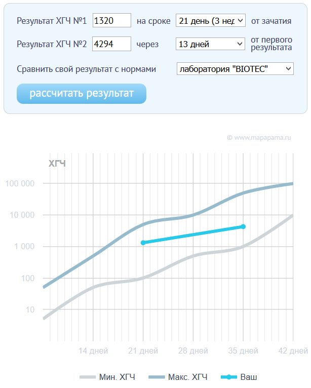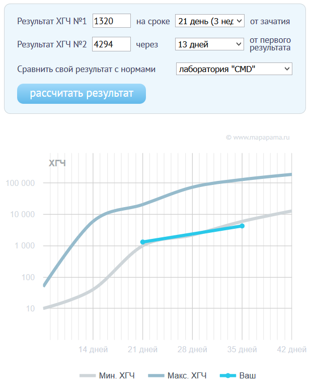 А вы в какой лаборатории сдавали кровь? Просто забила ваши цифры в калькулятор хгч, по двум лабораториям вы еще находитесь в пределах нормы. И, пожалуйста, не ревите напрасно, на ранних сроках все кажется таким сомнительным!