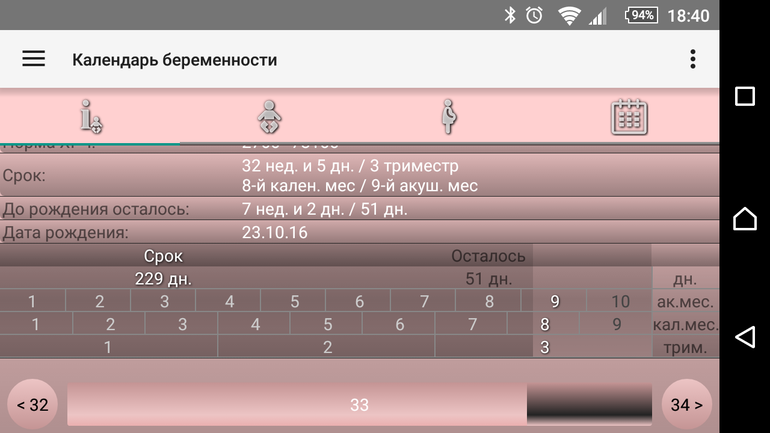 У меня приложение показывает сразу все сроки, а врачей интересует только срок в неделях.