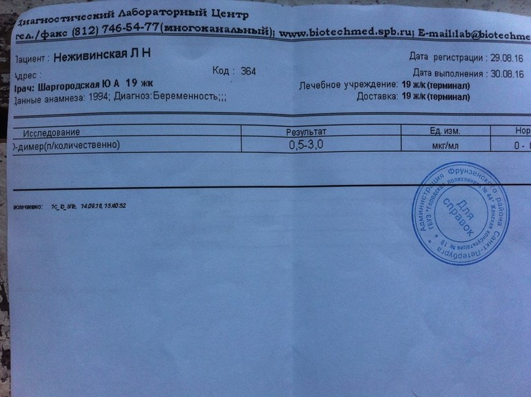 Вот, значит у вас выше его нормы однозначно, но насколько судить по такому результату нельзя. Нужно сдать в такой лаборатории, где будет результат одно цифрой, например 2,3, те поточнеее это во первых. Во вторых это у вас небеременная норма, во втором триместре она выше. Вам это гематолог должен объяснить и назначат вам низкомолекулярные гепарины колоть, я всю беременность на них. А доплер давно делали?