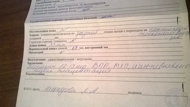Вначале мы с врачом сделали Узи. Результаты узи были хорошими.Только немного меня напугала низкая плацентация.