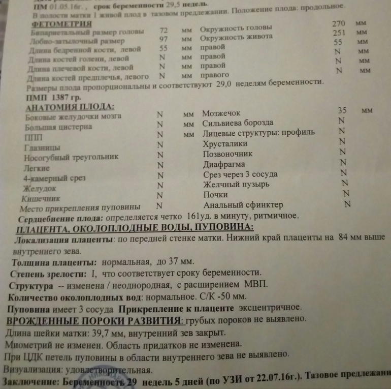 Сегодня 29+5, малышка на 29 ровно, пропорциональна, весит 1300, обвития нет, сидит на попе, но уверена, что еще много раз перевернется))