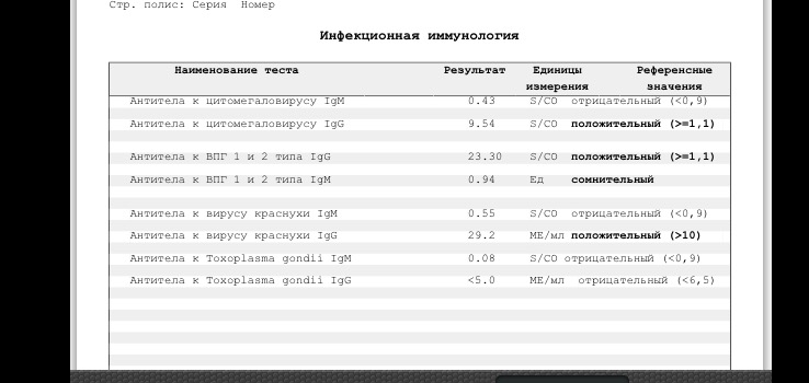 Анализы, инфекциизнаю что торч надо сдавать до Б,Врач мой особо то и не посылал..сказал что анализов на венерички достаточно..решила сдать сама ....пришли результаты,ко врачу только через неделю (((((до Б я обследовалась на обычные инфекции и не чего не было....герпеса...цитамегаовируса-не было!!!!и герпес еще СОМИТЕЛЬНО,сдавала я его!!!!и так у меня его нет,там..на лице...и не было не когда,я в шоке...что ещё сдать ?чем это черевато???насколько все плохо и с чем?