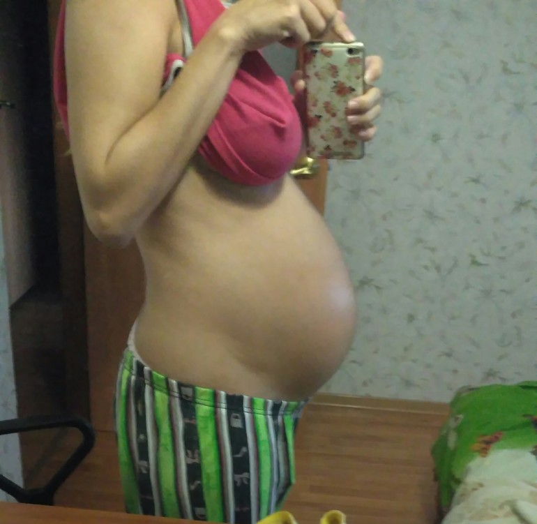У меня 31 неделя) живот не большой, правда, сама я не крупная. Вот и интересно, где малыш прячется