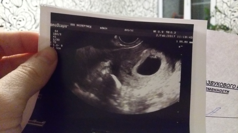 И у меня на 7й! Такая манюня) 5 нед и 2 дня по зачатию