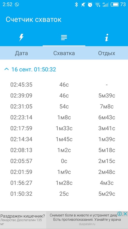 Вот согласна. Оба раза у меня "неупорядоченные схватки", которые скакали и по продолжительности, и по интервалу. Все упорядочилось только после эпидуралки. Так что я бы перестраховалась и в роддом поехала.