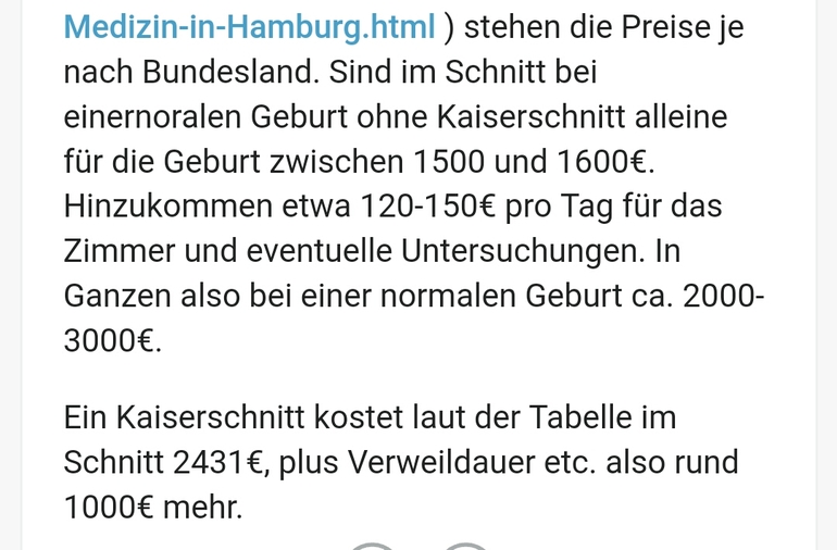 Для вас) Цены на роды в Германии)Зависят от земли) В среднем 2000-3000€ При кесарево 2341€+1000€)))