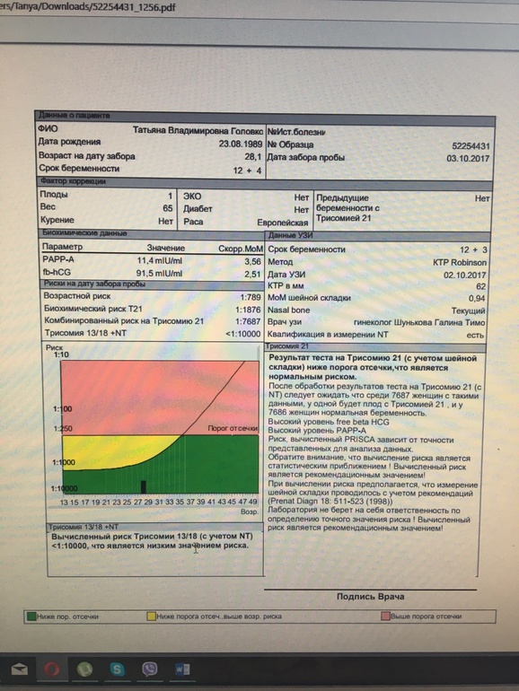 Я 2 Скрининг УЗИ в генцентре делала, то там врач очень удивилась скринингу крови,так как твп было хорошее и таких показателей быть не должно.Я так поняла,либо анализ неверный,либо тоже что-то повлияло...Но мне в генцентре не понравилось, на 3 пойду к Ельчаниновой или Харабуа.