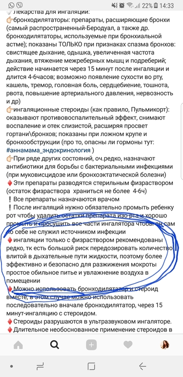 У меня хорошая врач. Я не спорила что небулайзер отличная вещь но применять его надо строго по показаниям.почитайте педиатра Анну Левадную.на будущее если у вас есть дети или когда нибудь будут. Наша такого же мнения.врачей из ссср Я не слушаю и наблюдаюсь)