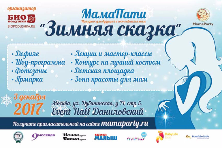 Как говорят орги "3 декабря в Москве пройдет праздник для будущих и состоявшихся мамочек MamaParty. Зимний праздник будет посвящен подготовке к Новому Году и Рождеству, в связи с этим организаторы обещают порадовать посетителей чем-то особенным! МамаПати - это всегда комфортная праздничная обстановка, интересные и полезные лекции, развлекательные мероприятия на сцене и множество необходимых вещей на ярмарке.".