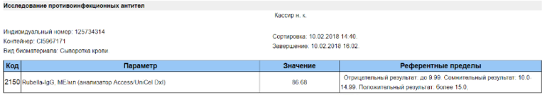 Здесь я понимаю, что у меня нет антител к краснухе.
