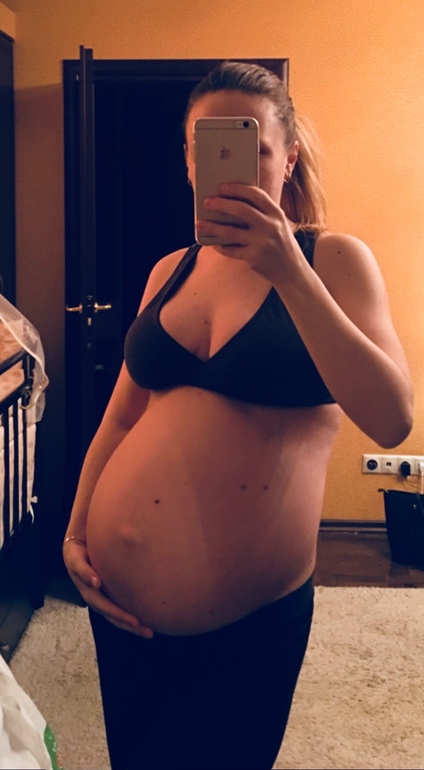 ну вот и финиш👏ты умничка, животик большой, но ты сама не большая, думаю поэтому)