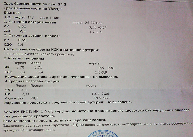 к примеру маточные и пуповинные артерии были в норме, а мозговая снизилась.
