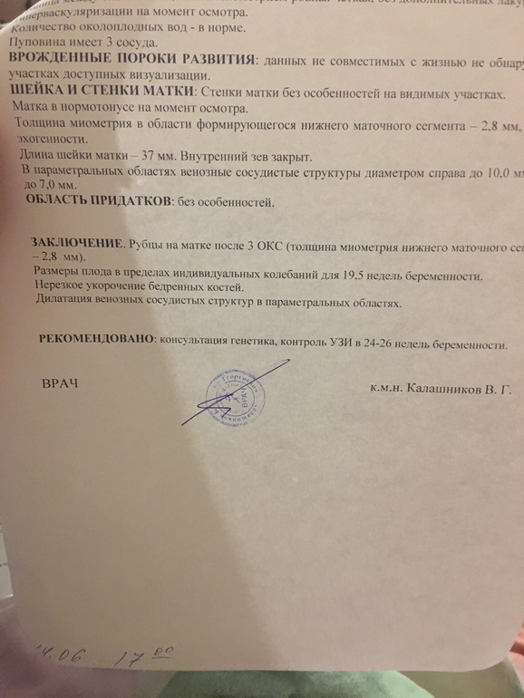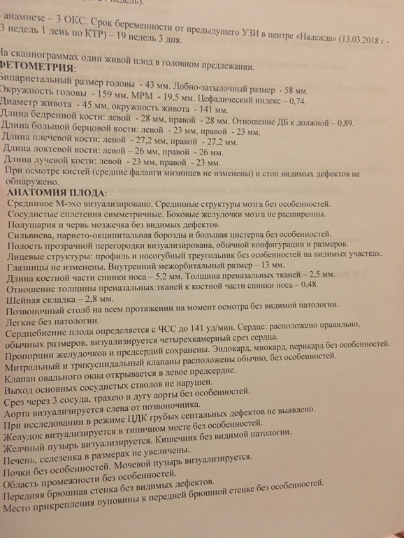 Сказал что мы напишем укорочение бедренных костей но это ничего страшного и в 26 недель посмотрим ещё. Но я посмотрела что и носовая кость меньше нормы по таблицам, хотя он про неё ничего не сказал. Но внизу написал что рекомендуется консультация генетика(перед этим предупредил что они всем это пишут) А теперь ещё залезла в первый скрининг а там ТВП 2.10мм. Хотя сам скрининг вроде нормальный. Короче пойду к генетику. Вы не знаете хорошего у нас в городе?