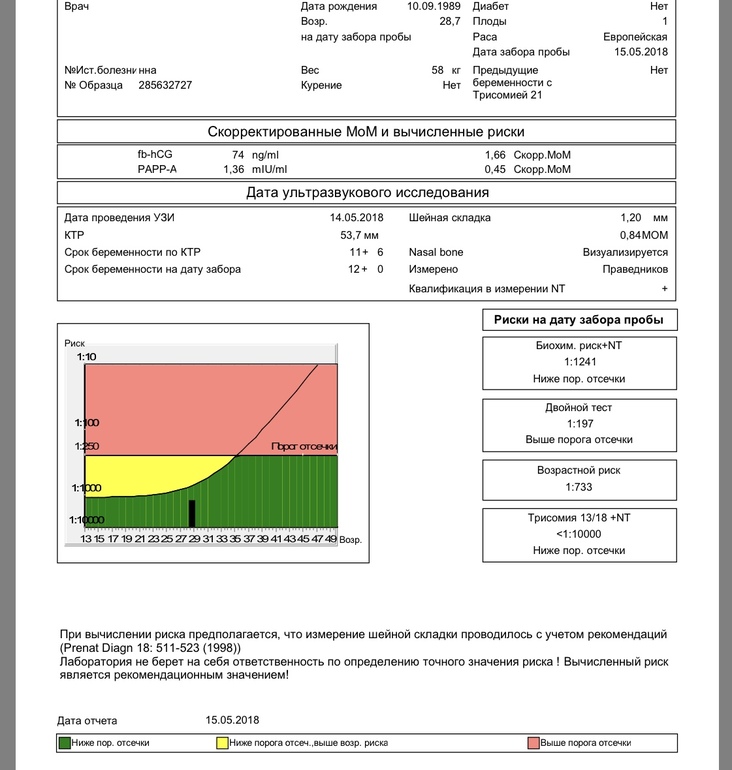 Он даже не мой)) просто врач на УЗИ, но подчеркнул что скрининг по крови так же важен, не меньше визуального осмотра. И вот это вот 1:197 мне как то режет глаз. А так я даже на учёт не встала 🙈