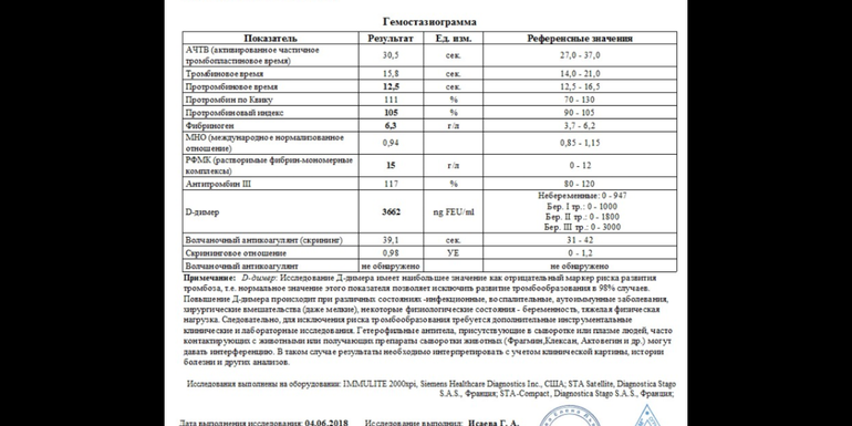 ДругоеДобрый вечер всем!срок у меня сейчас 38 недель,по плану 7 ого ктг и 14 кс.в связи с сомнительной тромбоэластограммой вчера,сегодня я сдала расширенную коагулограмму.имею мутации гемостаза.паи в гетеро,itga и 13 фактор.по факту 13 и паи как бы дополняют друг друга и не позволяют слишком спуститься крови,как мне объясняли.всю беременность д димер и все было в норме.последний раз в 33 недели сдавала.вот сегодняшние результаты.