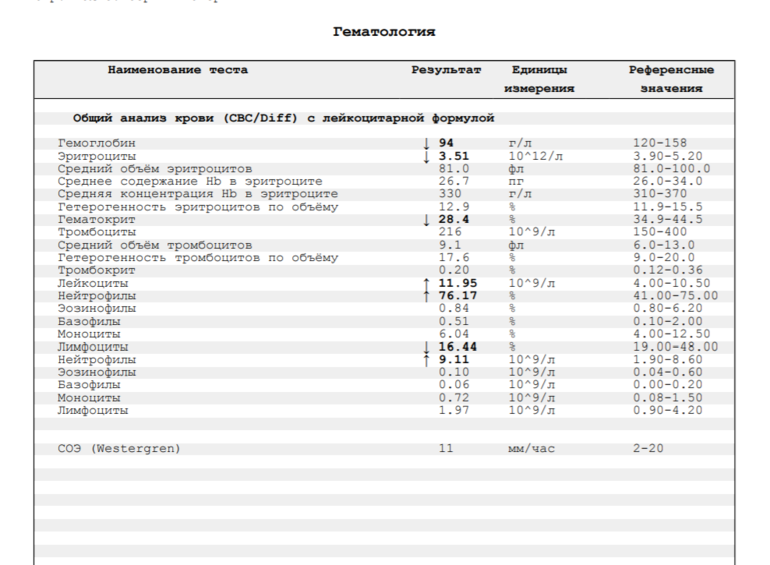 Гемоглобин понижен. Не зря я вчера пошла сдать кровь, ощущала себя плохо всю неделю.
