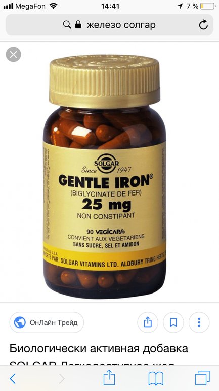 солгар, пью по 1 шт, плюс фолиевая кислота и аскорбинка по настроению, мне помогает, проверяла по анализам (гемоглобин, железо и ферритин)