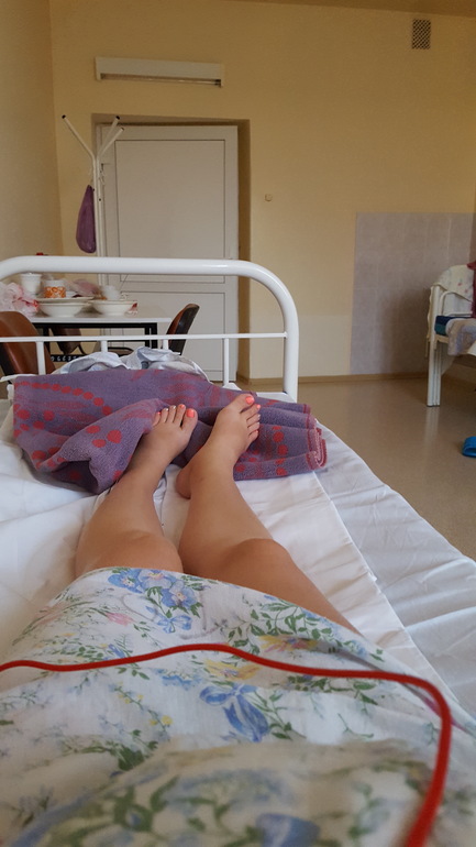 Токсикоз. Гестоз. ОтекиВчера с приема врача попала в роддом на сохранение, даже вещи не разрешили собрать. Врач увидела меня и сходу - Ты тааак отекла! Лицо опухло, ноги как у слона. Плюс 3 кг за 2 недели. Бессоница мучает. Она говорит, что отек на мозг пошёл, поэтому и не сплю. Ну и поменяли давление, а оно высокое для меня 130 на 100. Моча в норме. Госпитализация и всё тут. Пыталась я эти 2 недели лечиться дома сама. Пила и Канефрон, и Бруснивер и просто брусничный лист - ничего не помогает. Врач сказала, что это серьезно и может начаться кровотечение, а тут осталось то 4 недели доносить до пкс. Плюс ткани отекшие, а мне в операцию идти. Плохо будут шиться и заживать. Я конечно ее слушаюсь. В прошлую беременность, благодаря ее бдительности и советам, у меня есть доченька. Но в тоже время, думаю, а не перестраховывается ли, как сейчас любят врачи. Читала, что все отекают к концу Б и это нормально. Ведь раньше не клали с отеками в больничку. Просто теперь у меня дома маленький ребенок (через месяц 2 годика) и я ей нужна. Сердце мамино болит за неё...Еще и из роддома тюрягу устроили, на улицу не выпускают совсем. 3 месяца как у них новые правила. А как же свежий воздух беременным и прогулки? Раньше 2 часа давалось...Бонусом в кавычках еще стало то, что мне не могут поставить капельницы, вены все истончились и пропали после прошлой тяжелой Б, проведенной в больницах. Вчера 8 раз ставили катетер! Причем не медсестра, а врач анестезиолог, тк медсестры сказали, что это тяжелый случай. Теперь руки болят ужасно. Чувствую себя ватной подушкой для иголок.