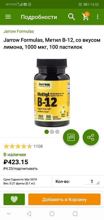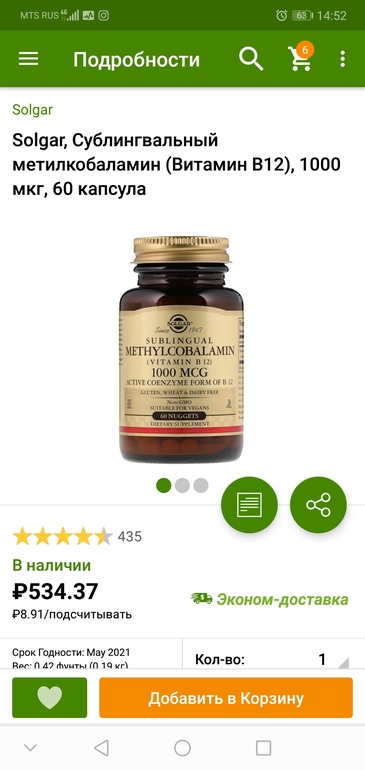 Мне гематолог порекомндовала B12. Я пью garden of life my kind organic в виде спрея. https://ru.iherb.com/pr/Garden-of-Life-MyKind-Organics-B-12-Organic-Spray-Raspberry-2-oz-58-ml/58126 Но я не каждый день пью, раза 2 в неделю, т.к. дозировка там большая. А в вашем солгаре ещё выше дозировка. На айхербе витамины группы В в бешенных дозах всегда почему-то.