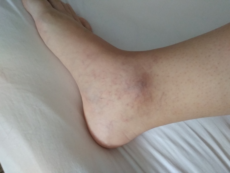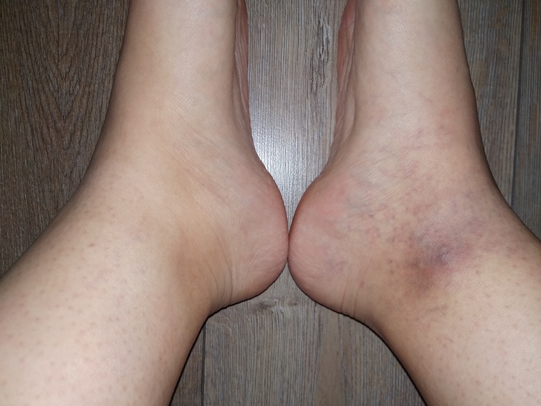 Растяжки, варикоз, родинки, волосы, ногти, кожа, бессонница, ВЕСДевочки, посмотрите пожалуйста. На фото стопы, щиколотки. Левая обычная, ничего не беспокоит. На правой всегда в этом месте кожа была темнее обычного, но сейчас при Б темный участок кожи как будто увеличился и все стало синюшнее какое-то. Также это пятно теплее на ощупь чем остальная кожа. Это варикоз? У вас было такое в Б?