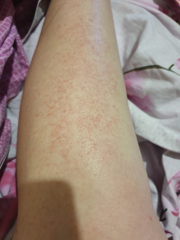 ДругоеДевочки,появилась сыпь на теле ,чешется....ничего жирного жареного соленого не ела,даже не предполагаю из за чего.Фото прилагаю.Что это может быть?